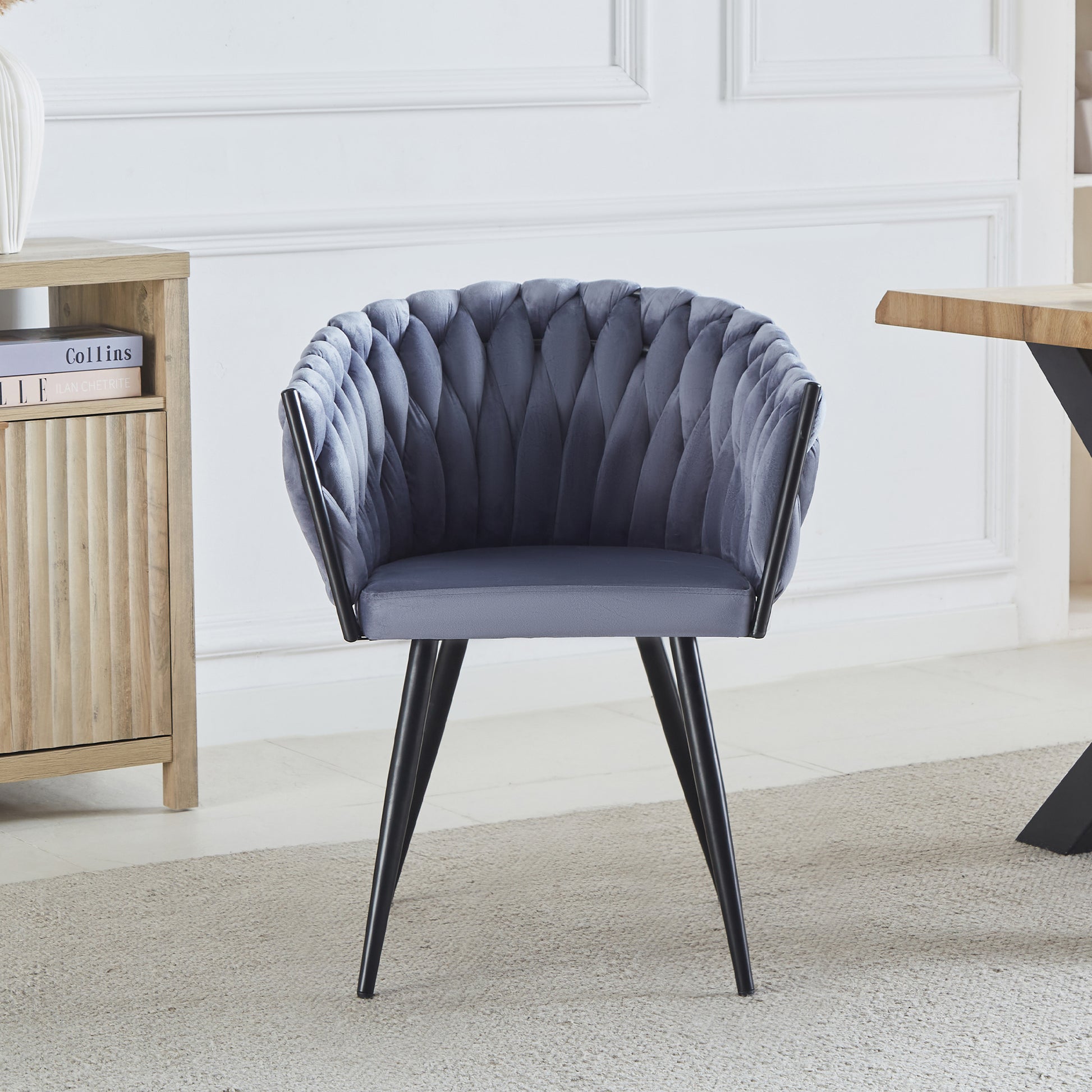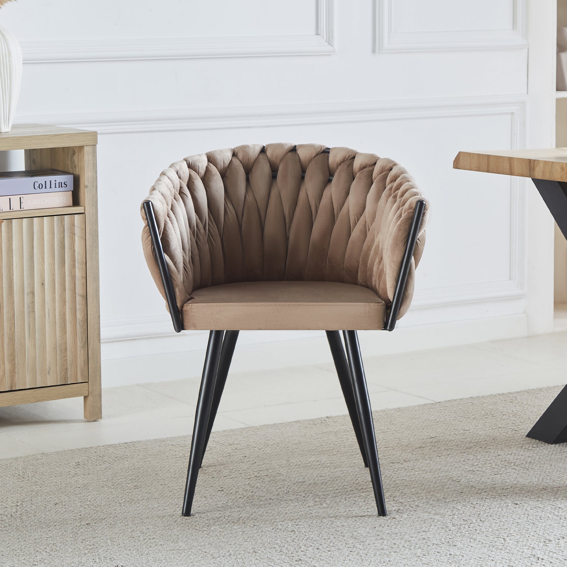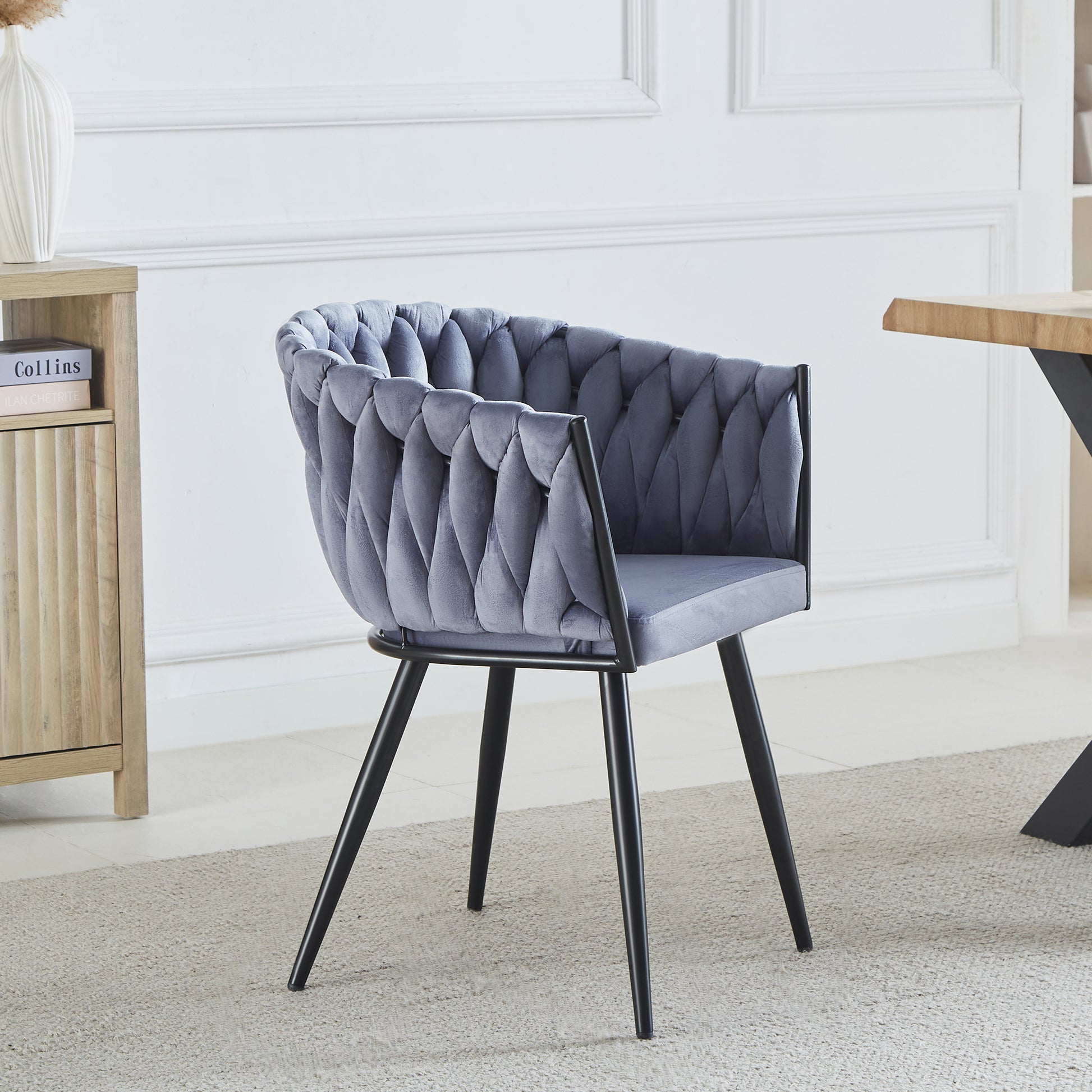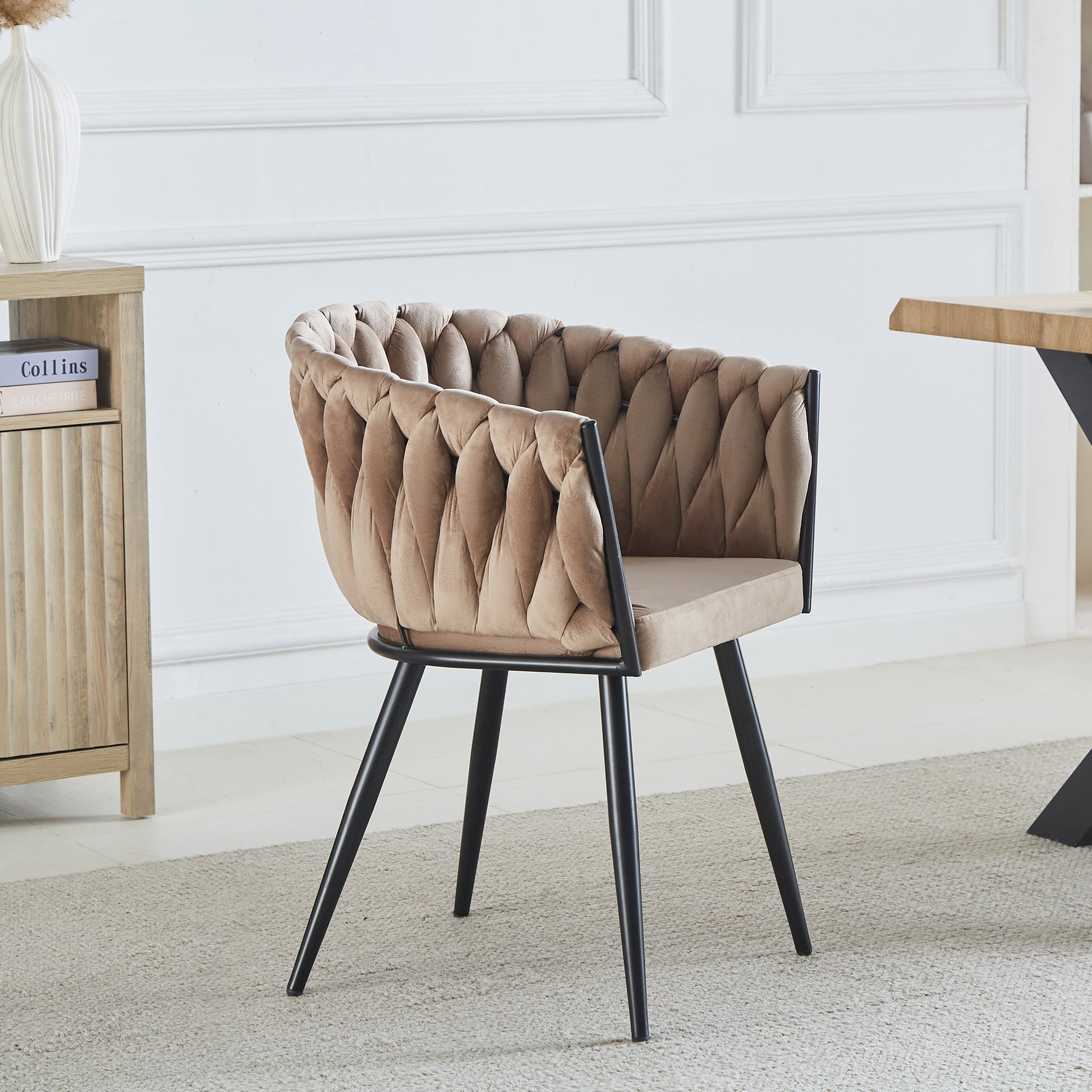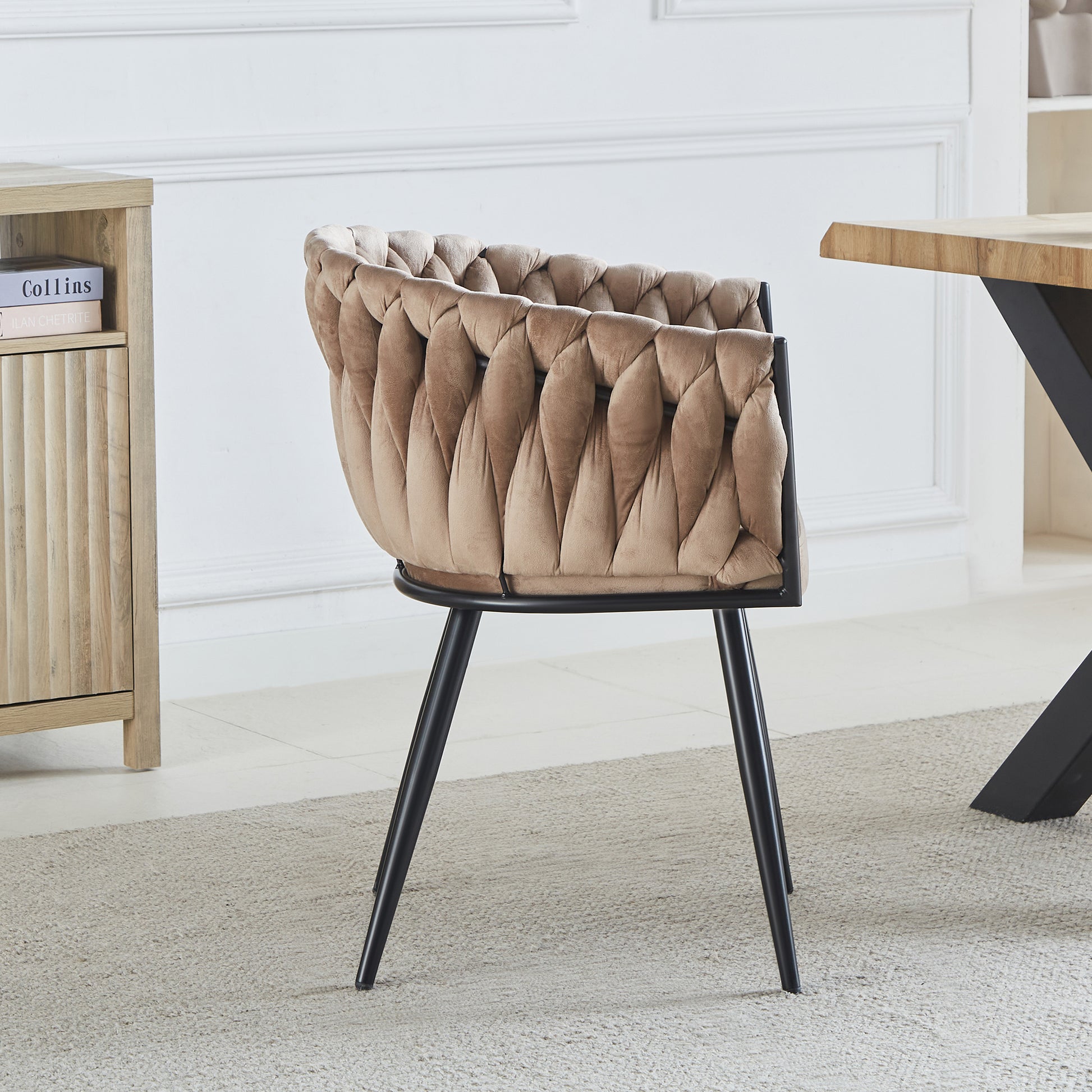 Introducing the Baiano Dining Chairs, available as a set of 2, designed to elevate your dining experience with a touch of luxury. Upholstered in plush velvet, these chairs offer an opulent feel that enhances any dining space. The foam interior ensures lasting comfort, perfect for extended meals and gatherings. Supported by long black powder-coated metal legs, the Baiano Dining Chairs combine durability with a sleek, modern aesthetic. Featuring a contemporary weave finish, they add a unique and stylish texture to your decor, seamlessly blending elegance with contemporary design.