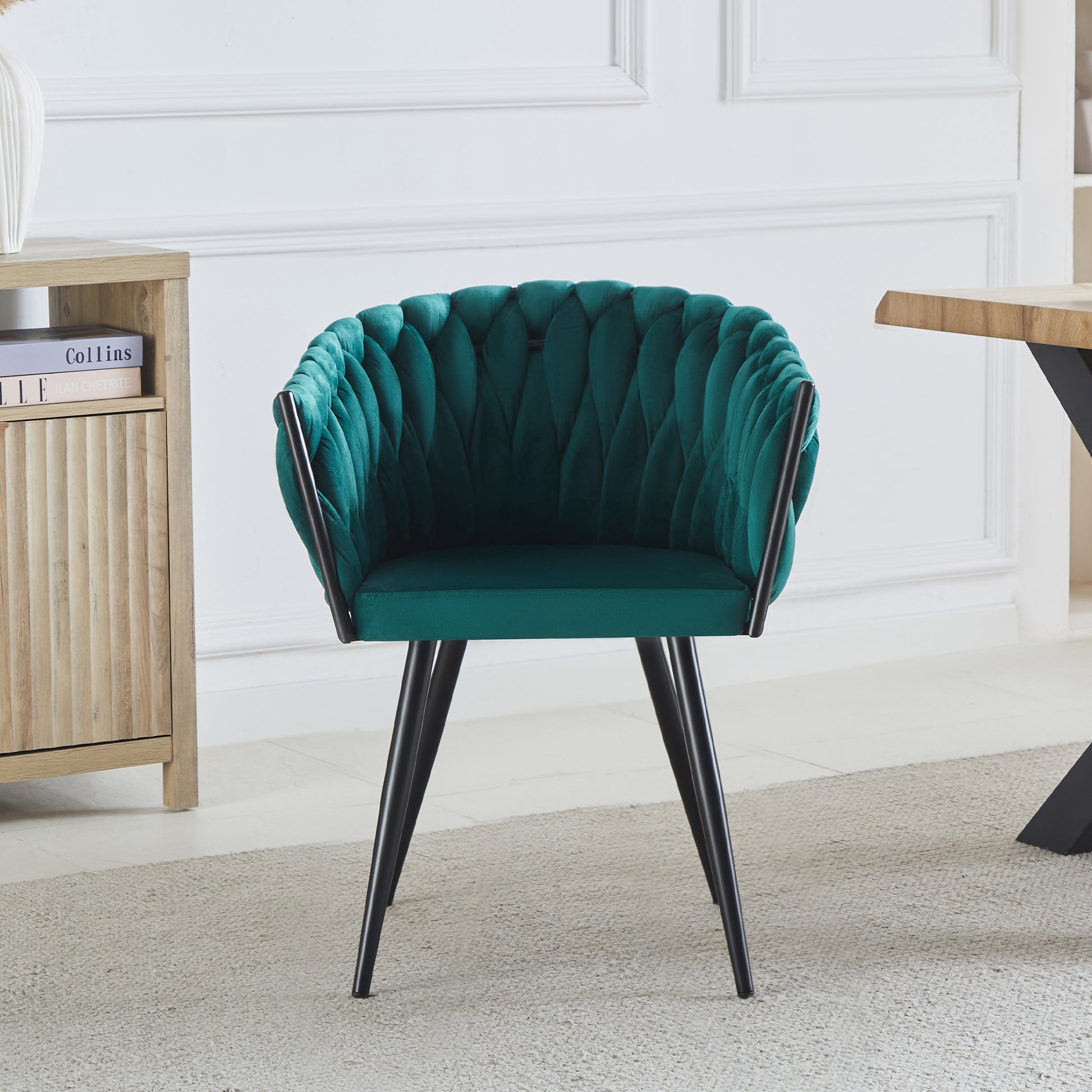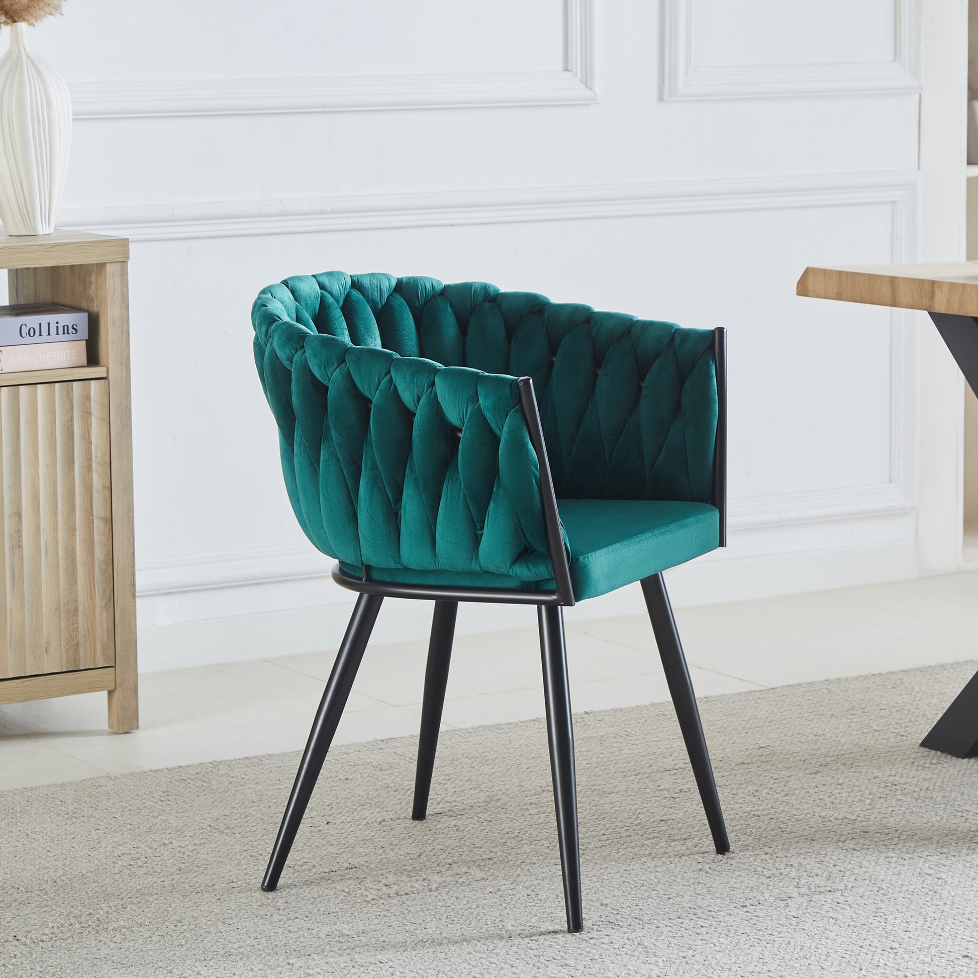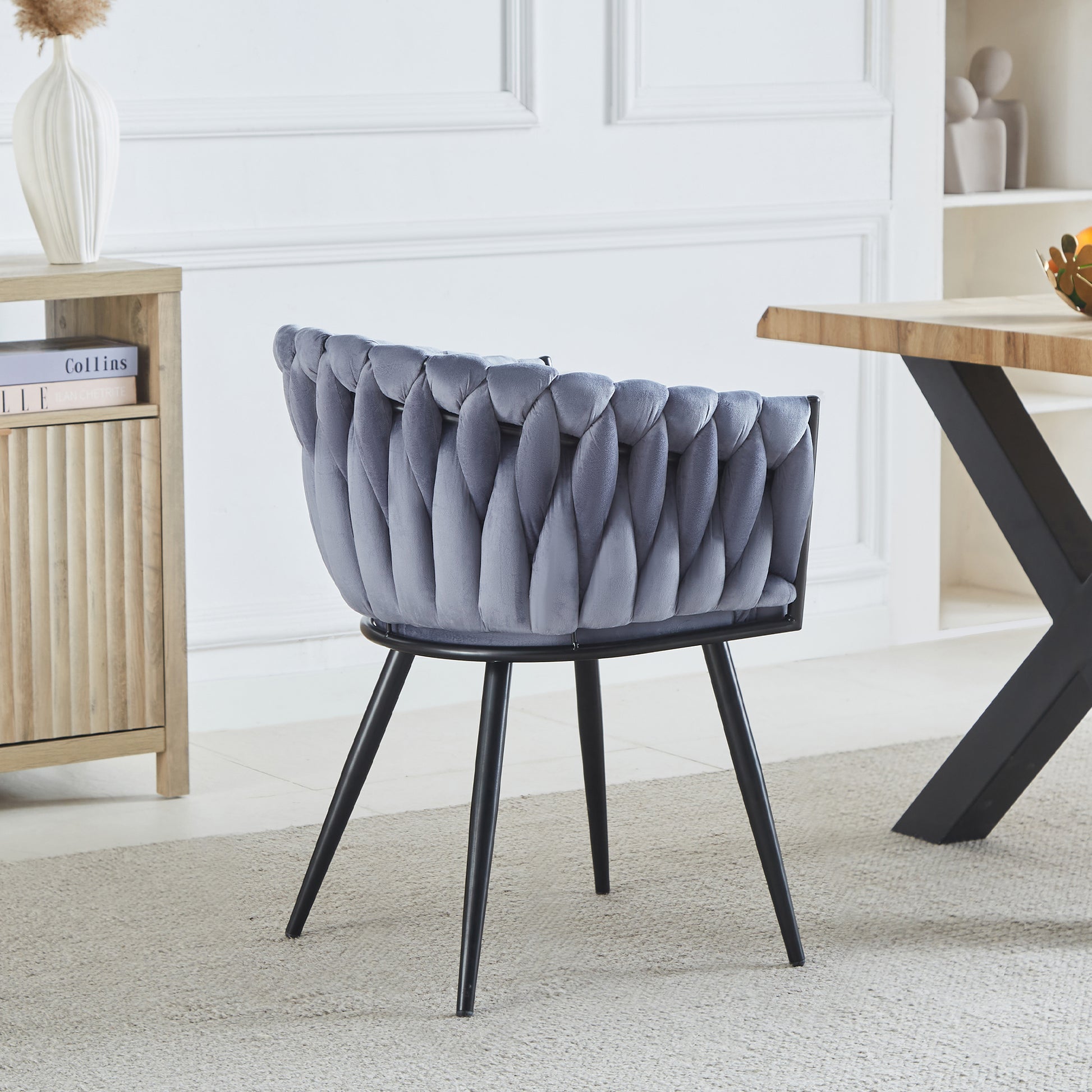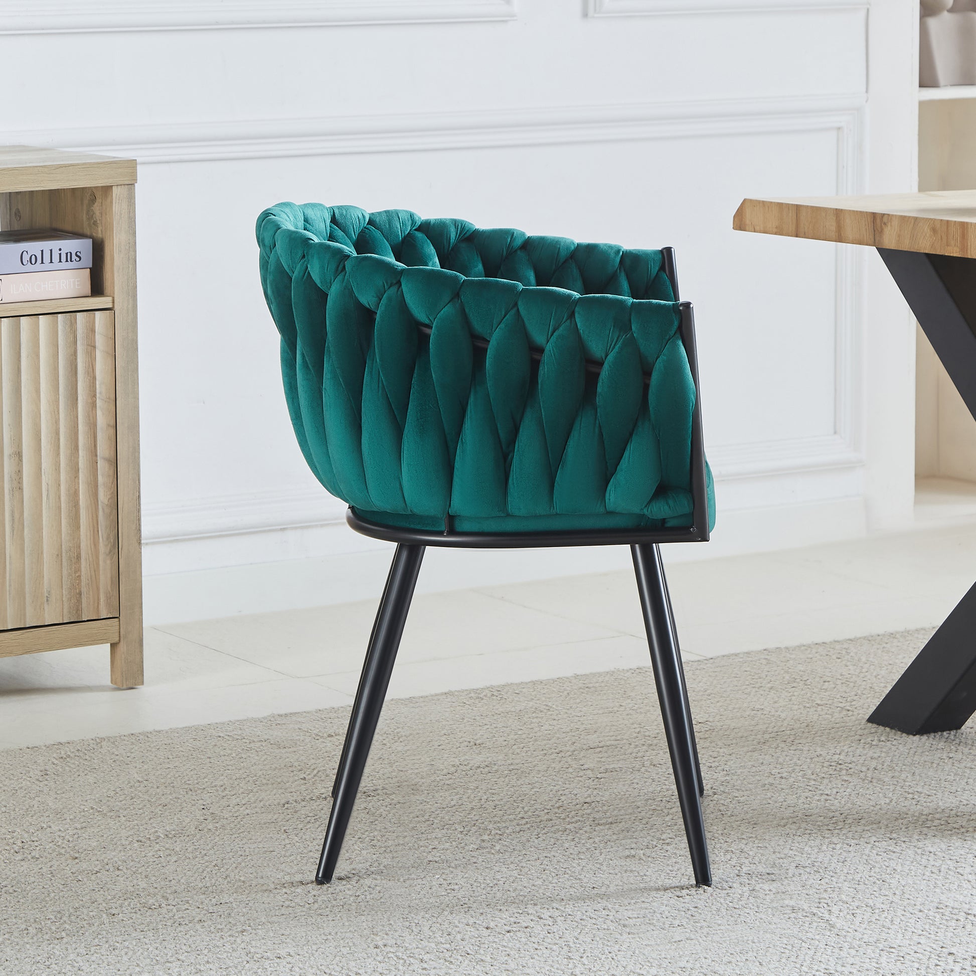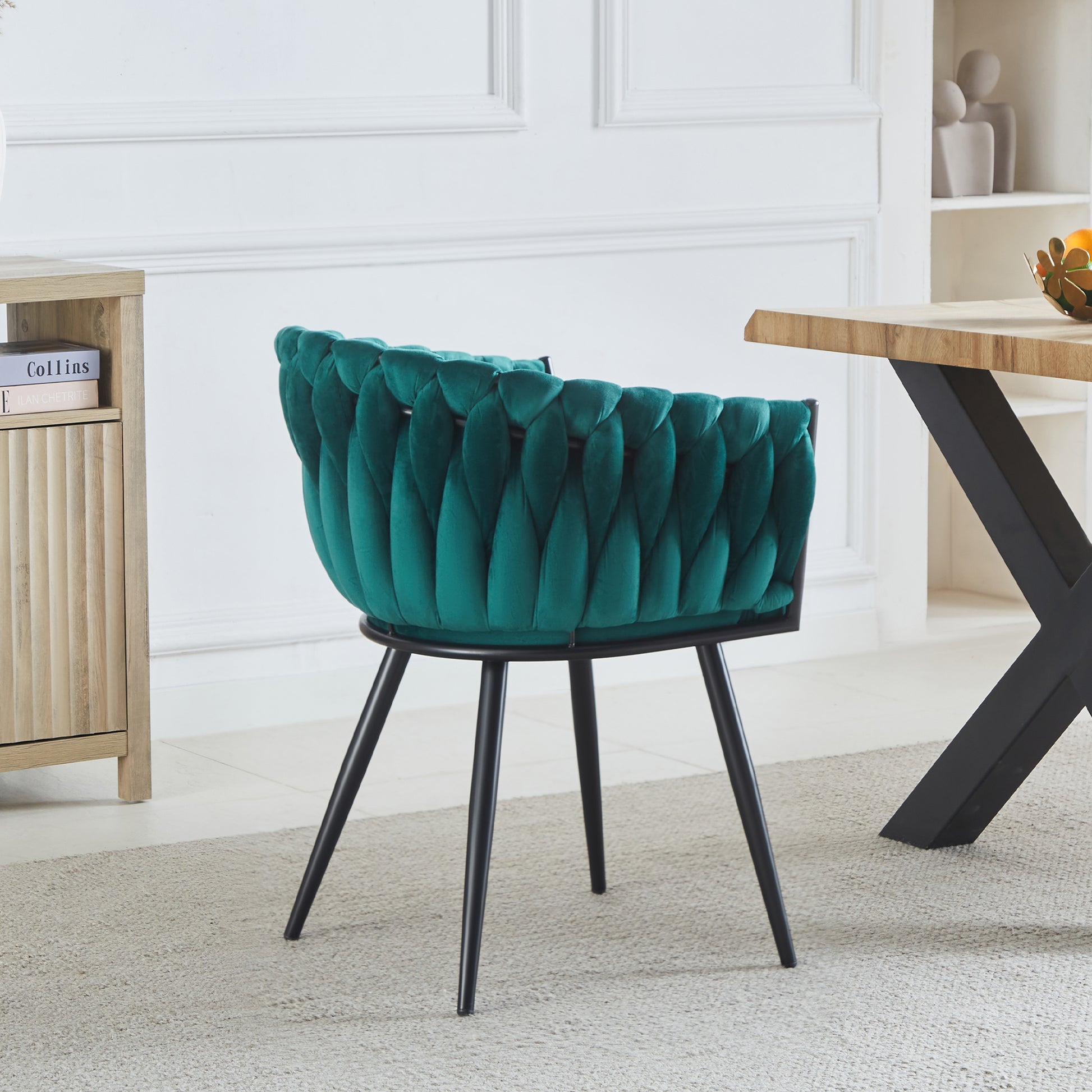 Introducing the Baiano Dining Chairs, available as a set of 2, designed to elevate your dining experience with a touch of luxury. Upholstered in plush velvet, these chairs offer an opulent feel that enhances any dining space. The foam interior ensures lasting comfort, perfect for extended meals and gatherings. Supported by long black powder-coated metal legs, the Baiano Dining Chairs combine durability with a sleek, modern aesthetic. Featuring a contemporary weave finish, they add a unique and stylish texture to your decor, seamlessly blending elegance with contemporary design.