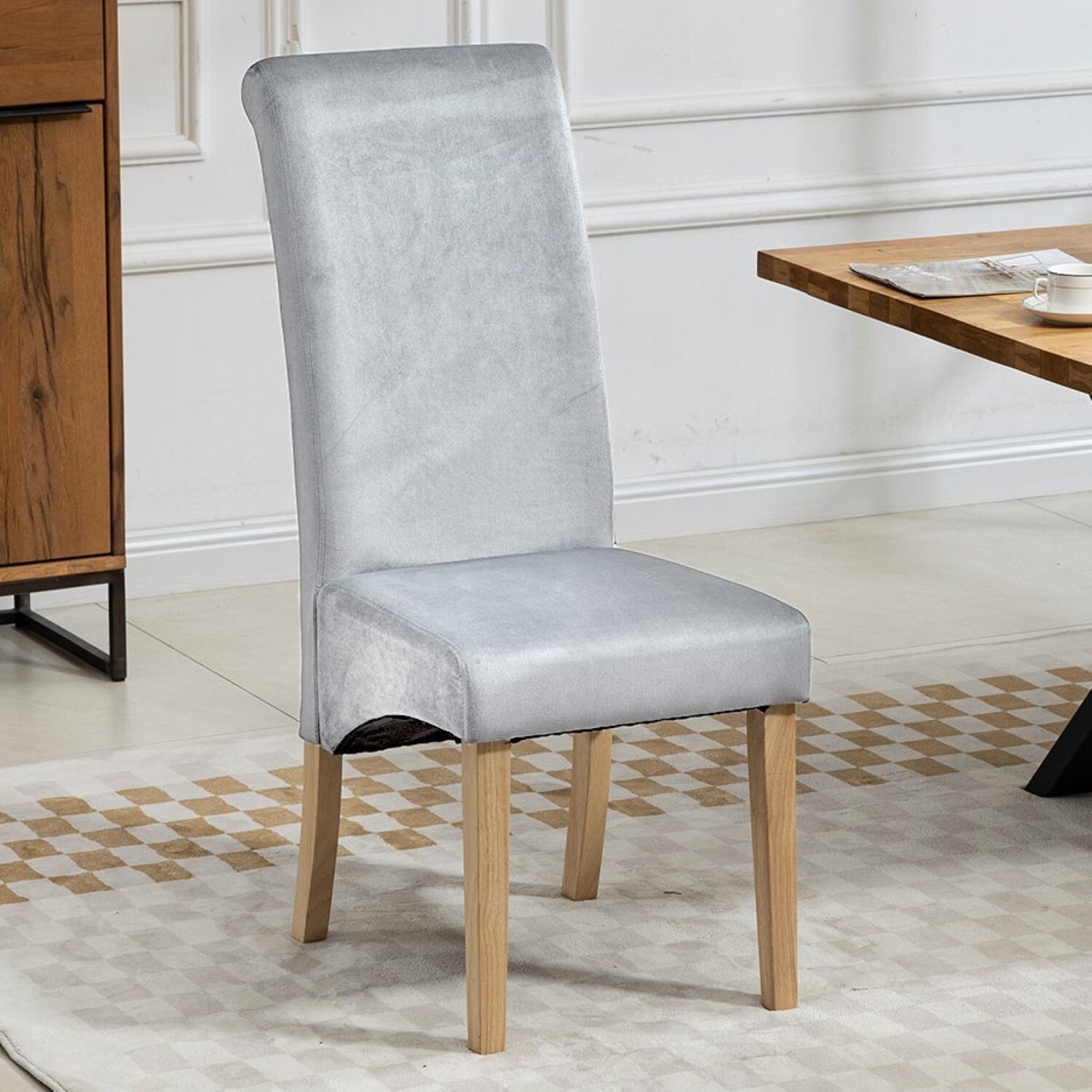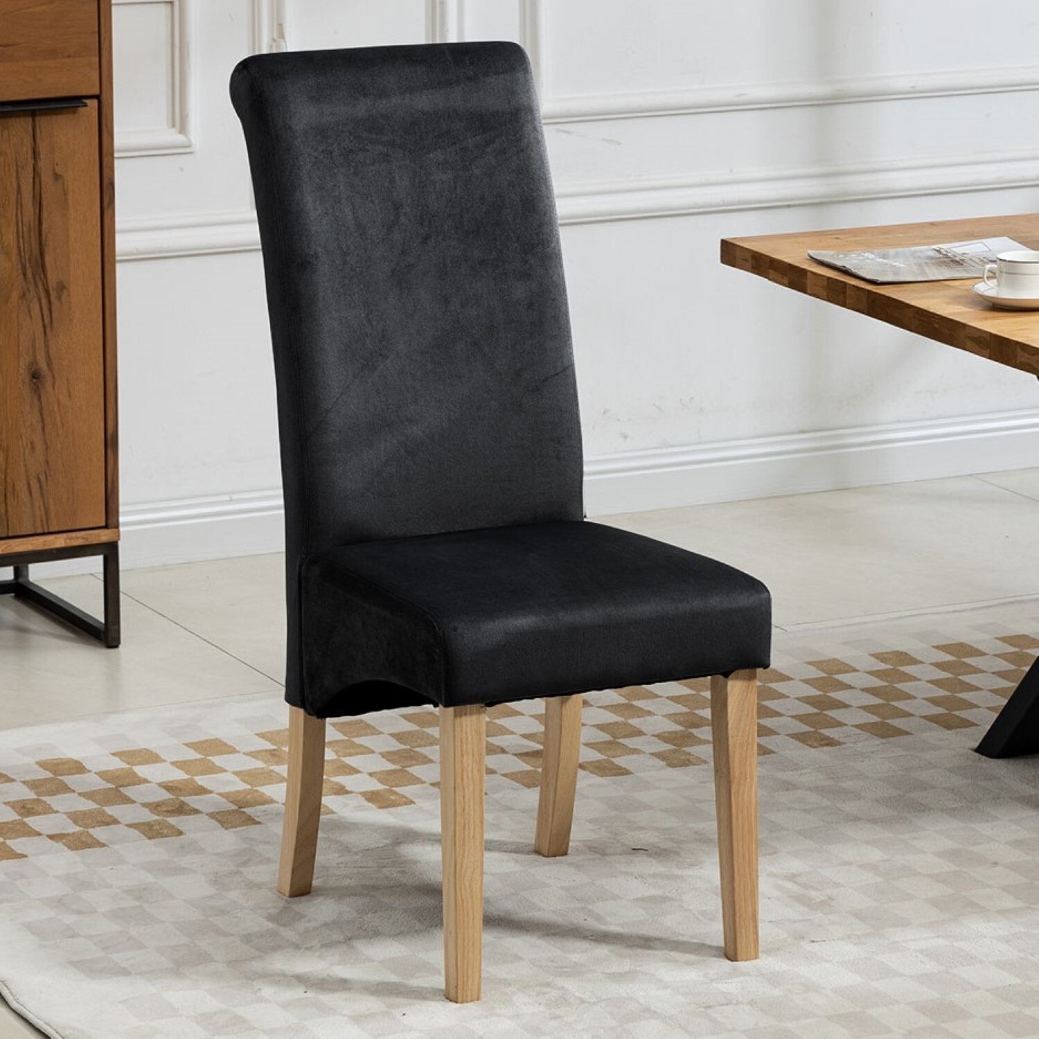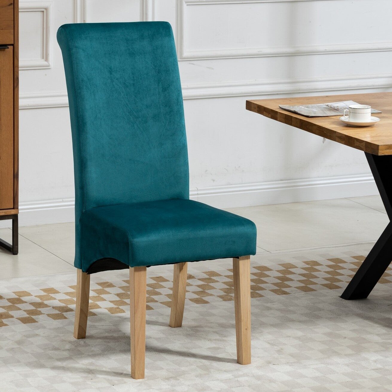 Elevate your dining experience with our exquisite pair of high, scroll back design velvet fabric upholstered dining chairs, meticulously crafted to seamlessly combine comfort, style, and quality.
