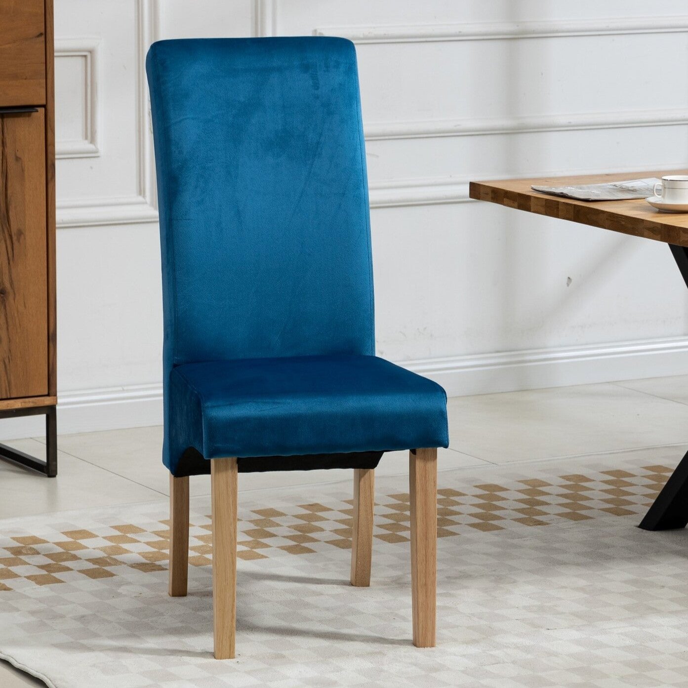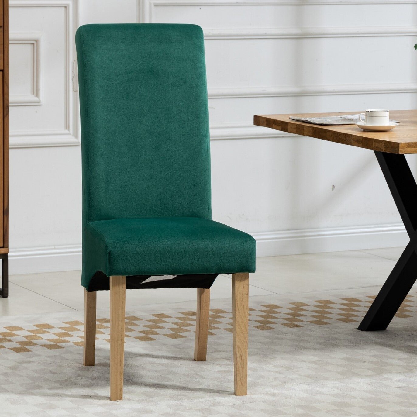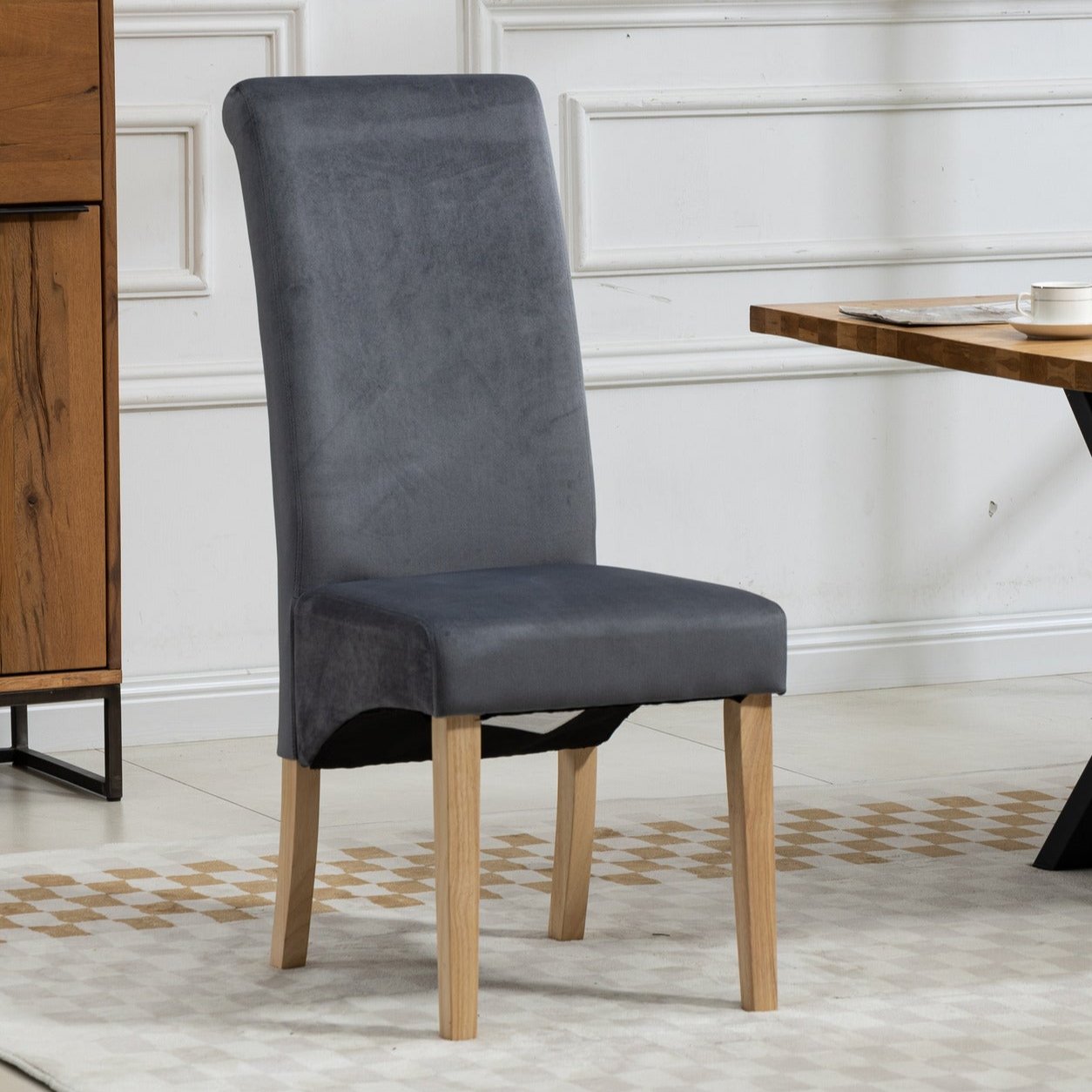 Elevate your dining experience with our exquisite pair of high, scroll back design velvet fabric upholstered dining chairs, meticulously crafted to seamlessly combine comfort, style, and quality.